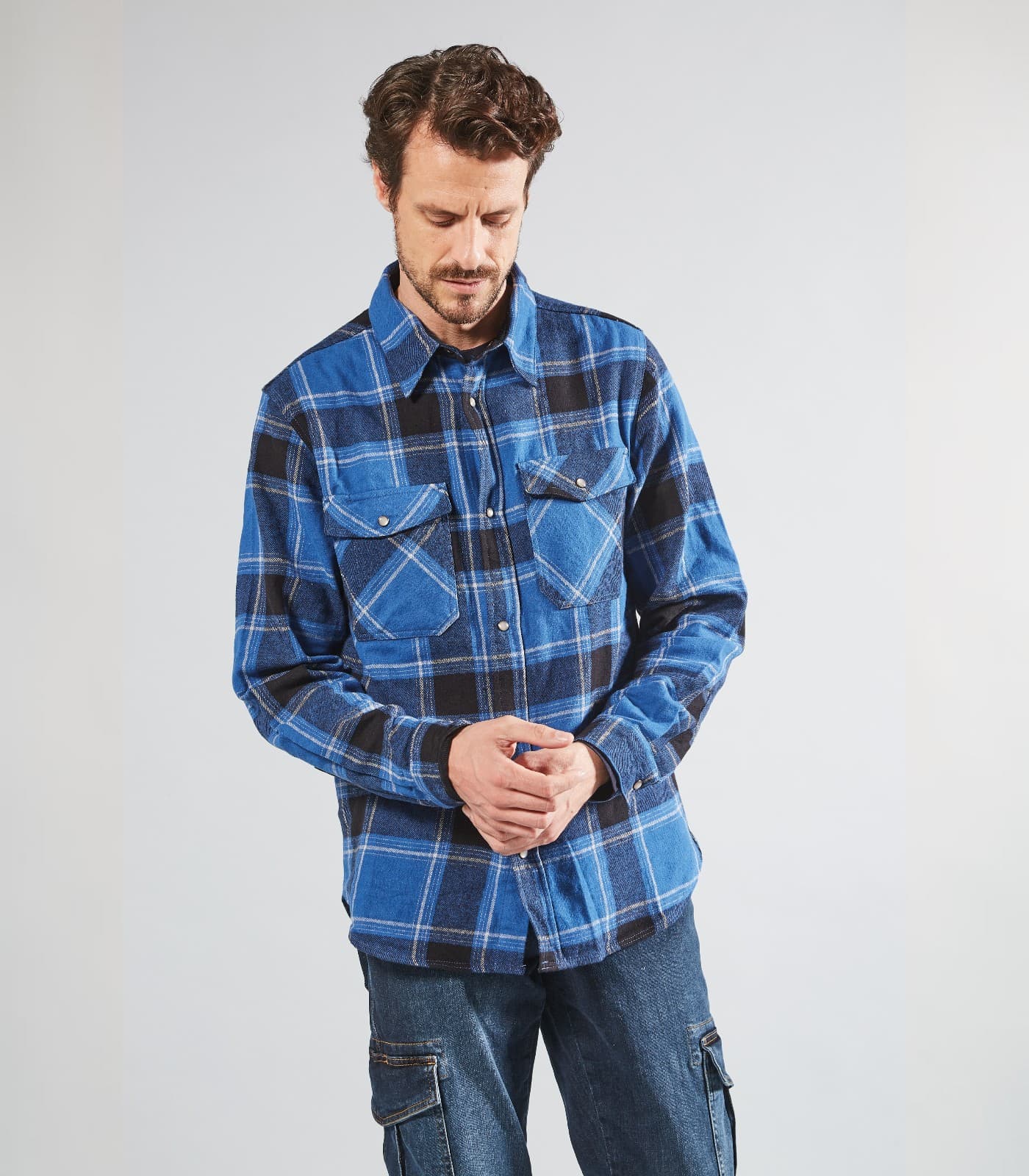 Camicia da lavoro in flanella 100% cotone. Tessuto morbido e traspirante per comfort prolungato. Dotata di tasche frontali con bottoni a pressione, portapenne e dettagli rinforzati. Vestibilità regular con piega posteriore per maggiore libertà di movimento e praticità operativa.