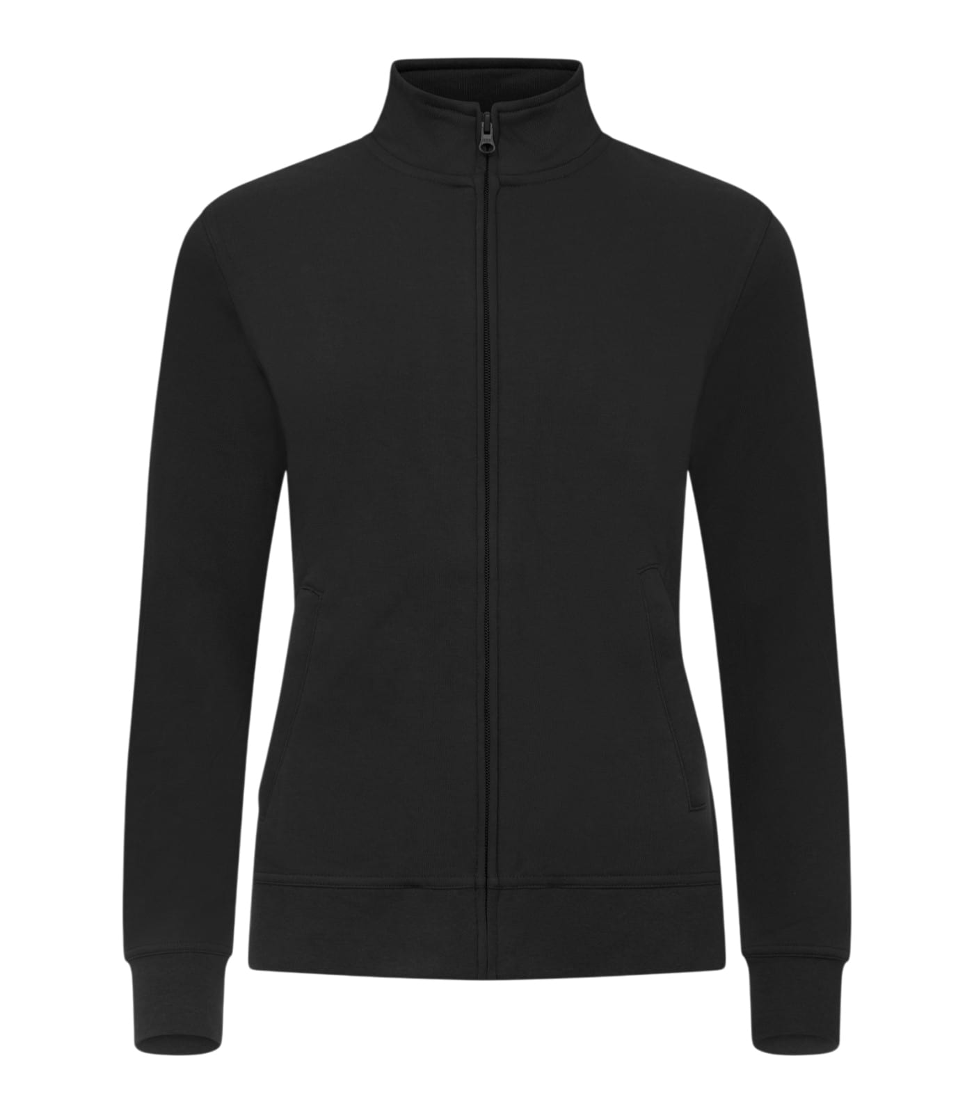Felpa Clique Basic Cardigan da donna con zip intera coperta. Tessuto morbido antipilling da 280 g/m², tasche con zip e soluzione integrata per auricolari. Certificata Oeko-Tex, ideale per divise aziendali femminili e uso professionale intensivo.