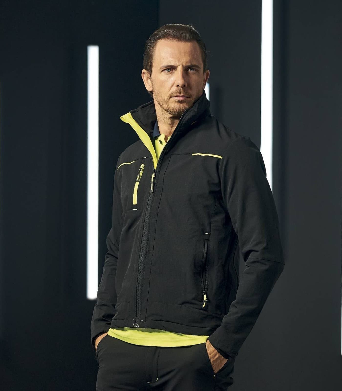 Giacca da lavoro in tessuto U-4 stretch, elastica, resistente e idrorepellente, ideale per attività dinamiche. Traspirante e ad asciugatura rapida, offre comfort prolungato. Dotata di tasche con zip, ampi interni e porta cellulare. Cappuccio a scomparsa e polsini antivento per maggiore protezione. Dettagli reflex e vestibilità ergonomica. Certificata EN ISO 13688.