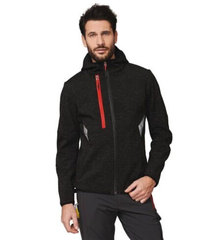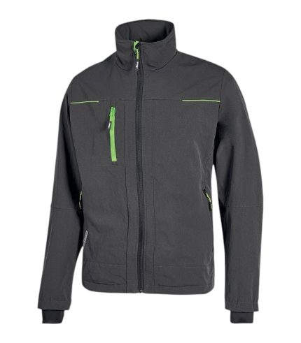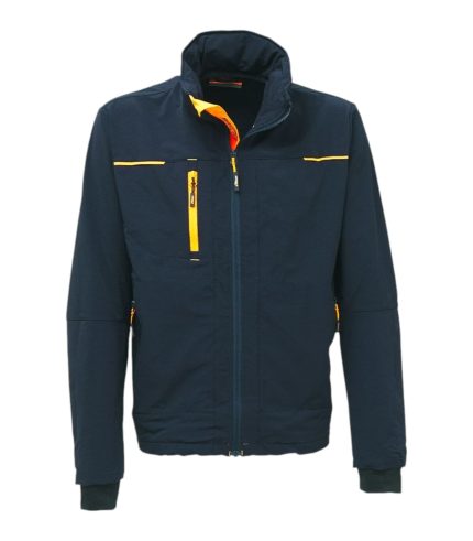 Giacca da lavoro in tessuto U-4 stretch, elastica, resistente e idrorepellente, ideale per attività dinamiche. Traspirante e ad asciugatura rapida, offre comfort prolungato. Dotata di tasche con zip, ampi interni e porta cellulare. Cappuccio a scomparsa e polsini antivento per maggiore protezione. Dettagli reflex e vestibilità ergonomica. Certificata EN ISO 13688.