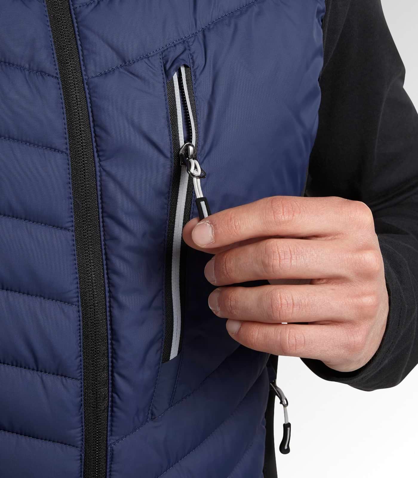 Gilet imbottito leggero, con fit comfort e inserti in materiale stretch. La parte posteriore è più lunga per miglior vestibilità.