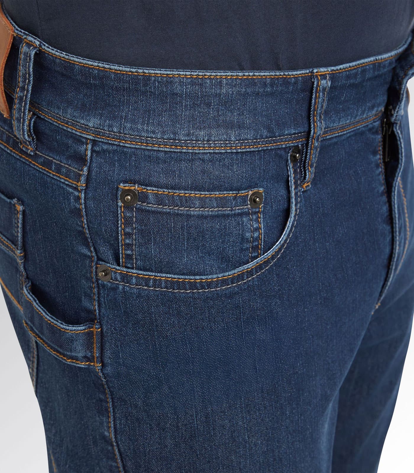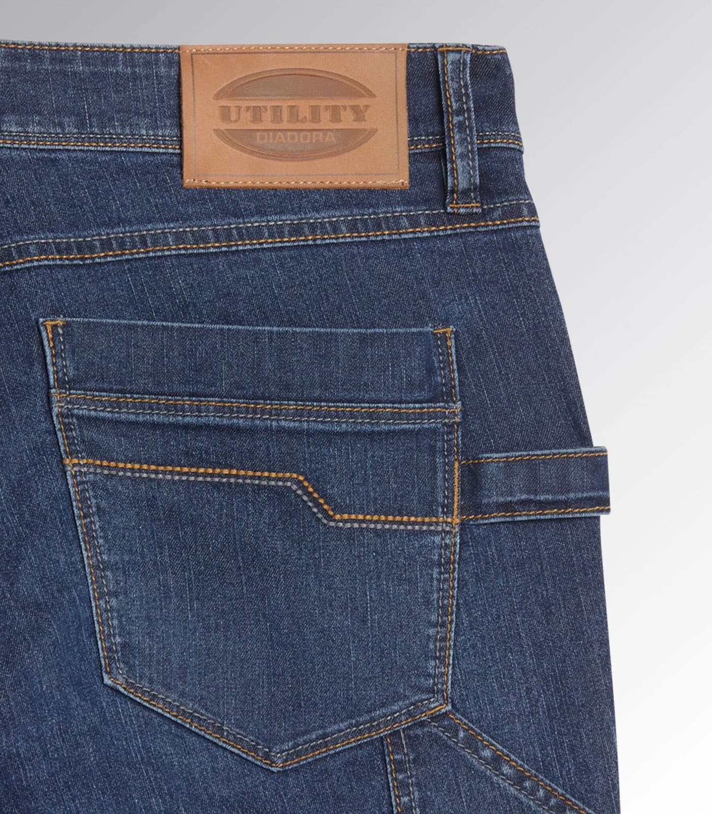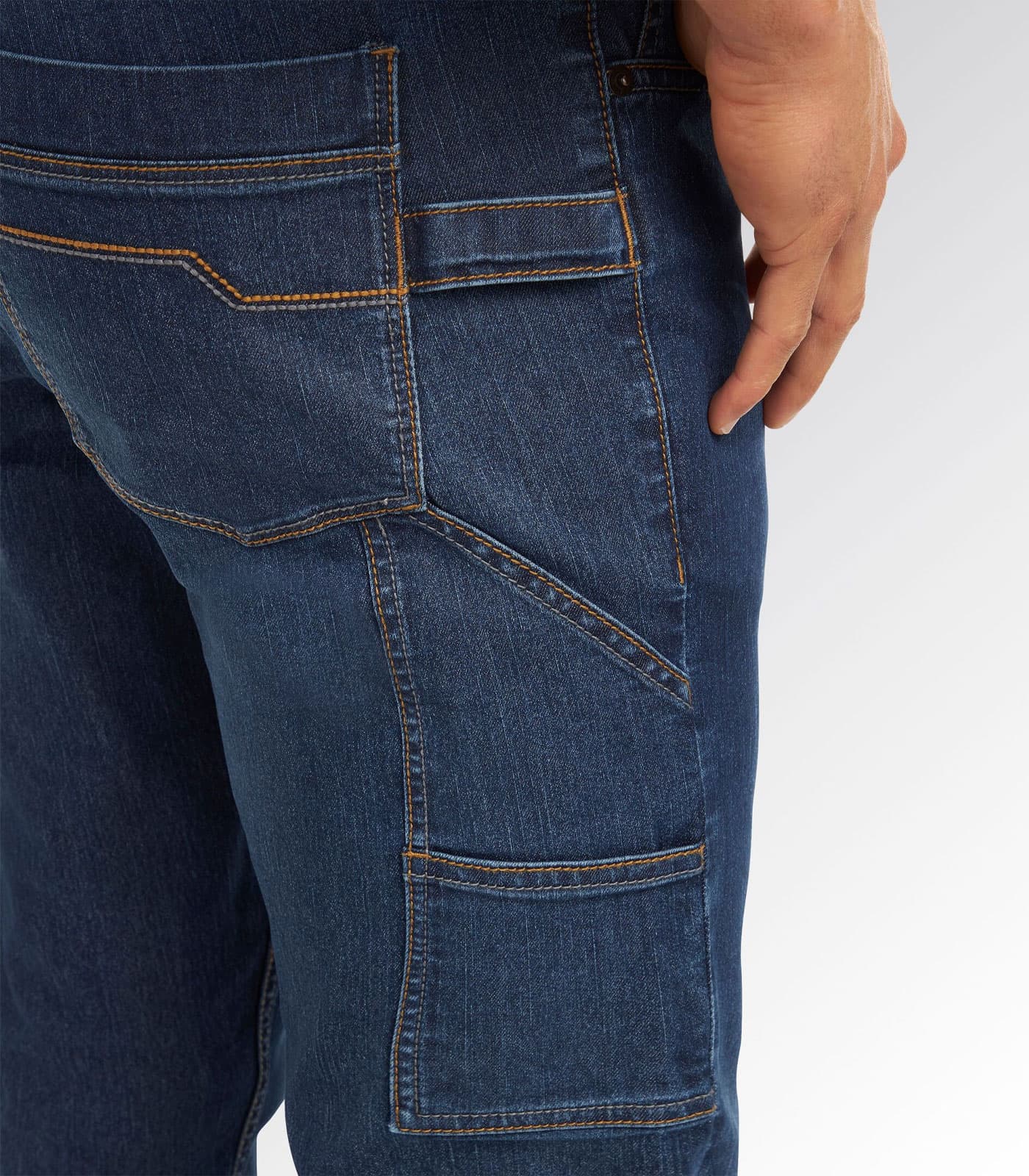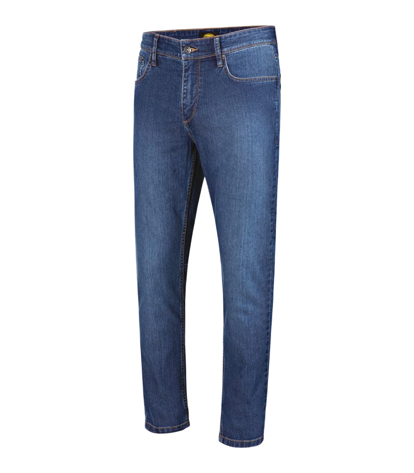 Jeans da lavoro leggero, elasticizzato. Linea Denim workwear, tessuto stone washed. Trattamenti e cura dei dettagli tipici della tradizione della jeanseria italiana. Costruzione cinque tasche con tasca portametro e loop portamartello. Slim fit.