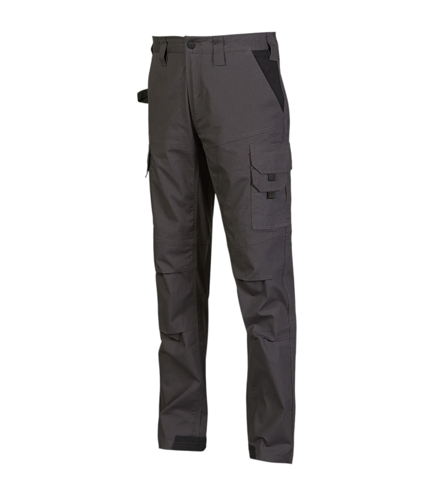 Pantalone cargo da lavoro estivo in cotone ripstop elasticizzato, resistente e leggero, ideale per utilizzo professionale quotidiano. Tessuto anti-strappo in cotone Ripstop con elasticità meccanica per massimo comfort e libertà di movimento. Dotato di tasche multifunzionali con chiusura velcro, ginocchia preformate e rinforzo battitacco per maggiore durata. Vestibilità ergonomica e traspirante.