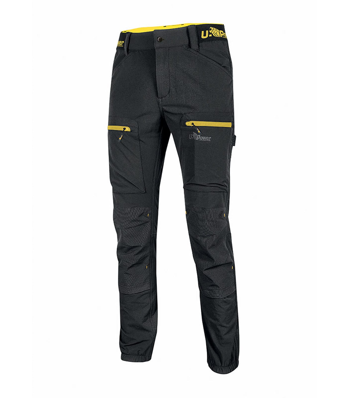 Pantaloni da lavoro estivi U-Power elasticizzati e idrorepellenti, con alta traspirabilità, tasche multifunzionali, protezione lombare e porta-ginocchiere.