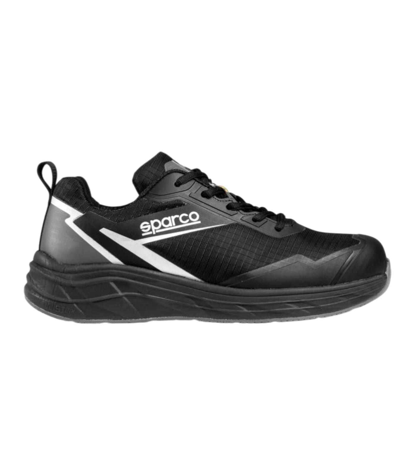 Scarpa antinfortunistica Sparco Chris S3S in stile running, realizzata in tessuto RIP-STOP idrorepellente con rinforzi in TPU. Dotata di puntale in vetroresina, intersuola in EVA super-comfort ad alto ritorno di energia e suola HRO. Protezione ESD e comfort estremo.